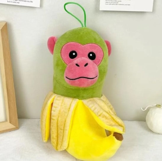 Este tierno mono disfrazado de plátano se convertirá en el favorito de tu peque (¡o tuyo!). Con colores vibrantes, textura suave y un diseño único, es perfecto para jugar, decorar o simplemente abrazar.